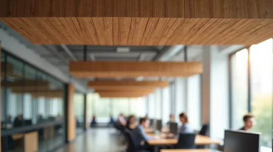 El ruido es uno de los principales enemigos de la concentración. En espacios abiertos, controlar la reverberación se vuelve crítico. El coeficiente NRC (Noise Reduction Coefficient) mide la capacidad de un material para absorber sonido: un NRC de 0,80 significa que el material absorbe el 80% del sonido que recibe. Los paneles acústicos de techo, pared o suspendidos deben tener un NRC superior a 0,70 para ser realmente efectivos.